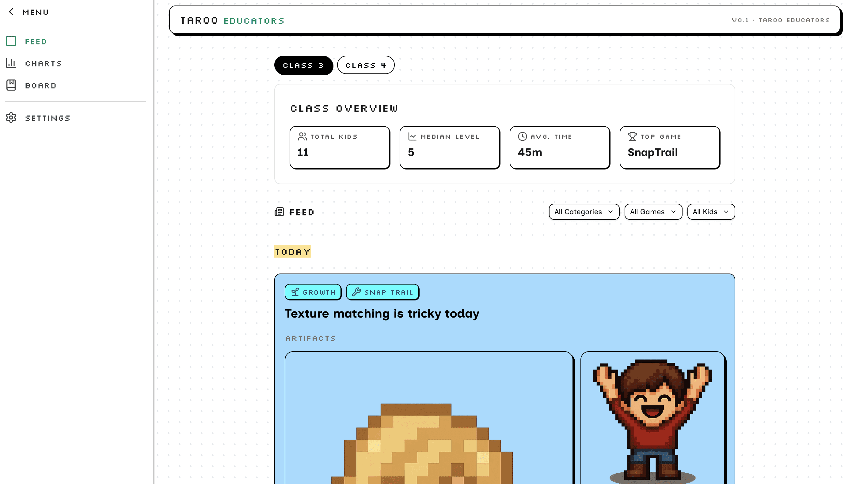 Taroo turns writing, speaking, music and art into a game with clear steps and feedback, so kids keep going and finish work they are proud of.